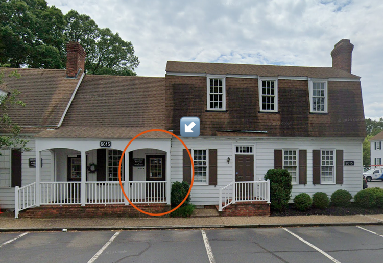 My building faces Forest Hill Avenue, right at the corner with Huguenot Road. If you're arriving from Forest Hill Avenue, look for the white porch, the entrance to my office is the second door and has signage with my name. Once inside, head straight up the flight of stairs, and you'll arrive in the waiting room. I’ll meet you there.